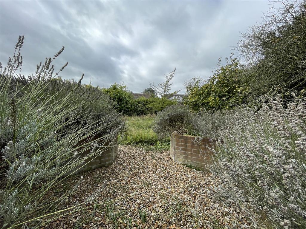 The bungalow offers a surprising amount of rear garden space bordered by tall shrubs and foliage along the rear boundary. This once landscaped garden has a range of fruit trees, such as apple, pear and quince, alongside raised and stocked lavender beds. The garden is now overgrown, however presents an ideal opportunity for the next owner to restore to its former glory.
