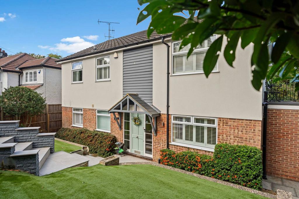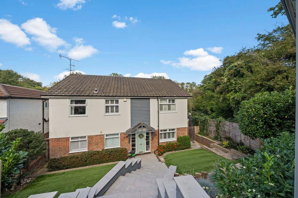 REF JK0700.'Ashley' offers a rare opportunity to live in the desirable village of Kingswood . Built originally in the 1970s the property has benefitted considerable refurbishment and extending , providing what is now a highly contemporary 4 bedroom detached home that backs and sides on to woodland and common land.The accommodation, which is spread over two floors, comprises large hallway, cloakroom, study, family room, sitting room/cinema room, utility room, kitchen breakfast room. On the first floor 4 double bedrooms including master en-suite with dressing room and en-suite to the second bedroom, family bathroom.Outside there is a log cabin currently used as a virtual golf/cinema room, and detached double garage with hardstanding for off street parking.*Please note that the rear half of the garden belongs to Network Rail.