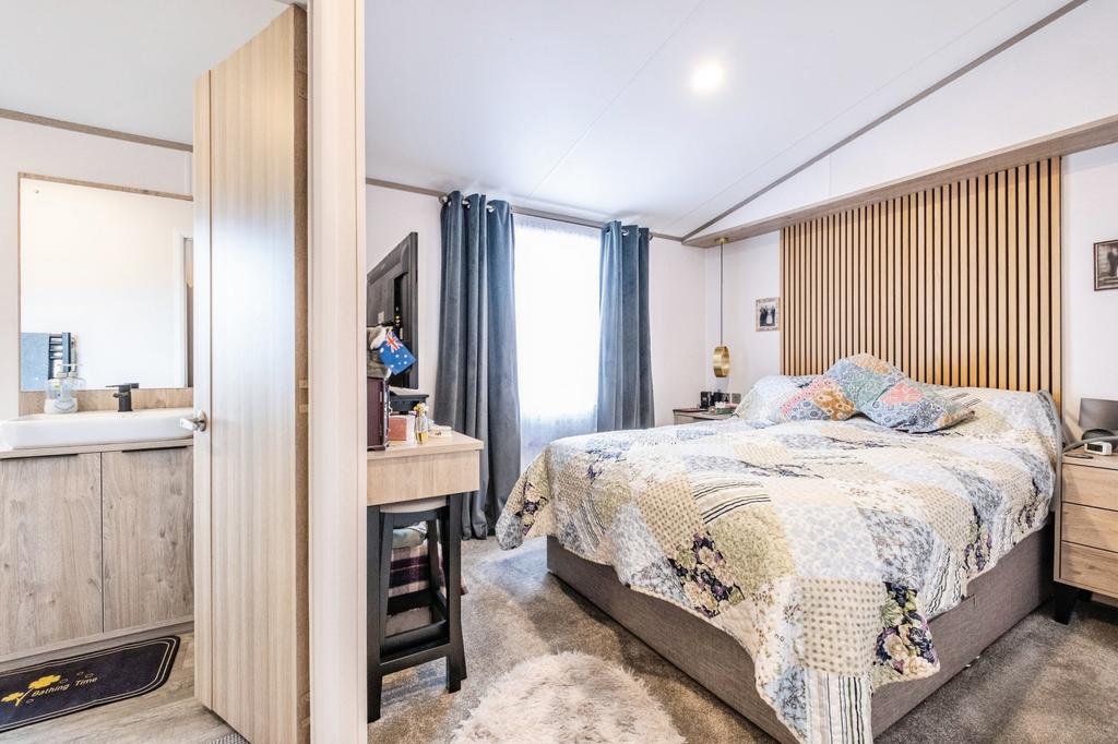 This pre-owned (40'x20') park home is perfect for those looking for a detached, easy to maintain, bungalow style property. The home has a modern, open plan kitchen, dining and living area with doors leading out to the decking and garden. The home has a double bedroom with an en suite and a second twin bedroom and bathroom. The home has a large fenced garden with two storage shed, parking for two cars and views of the surrounding countryside.