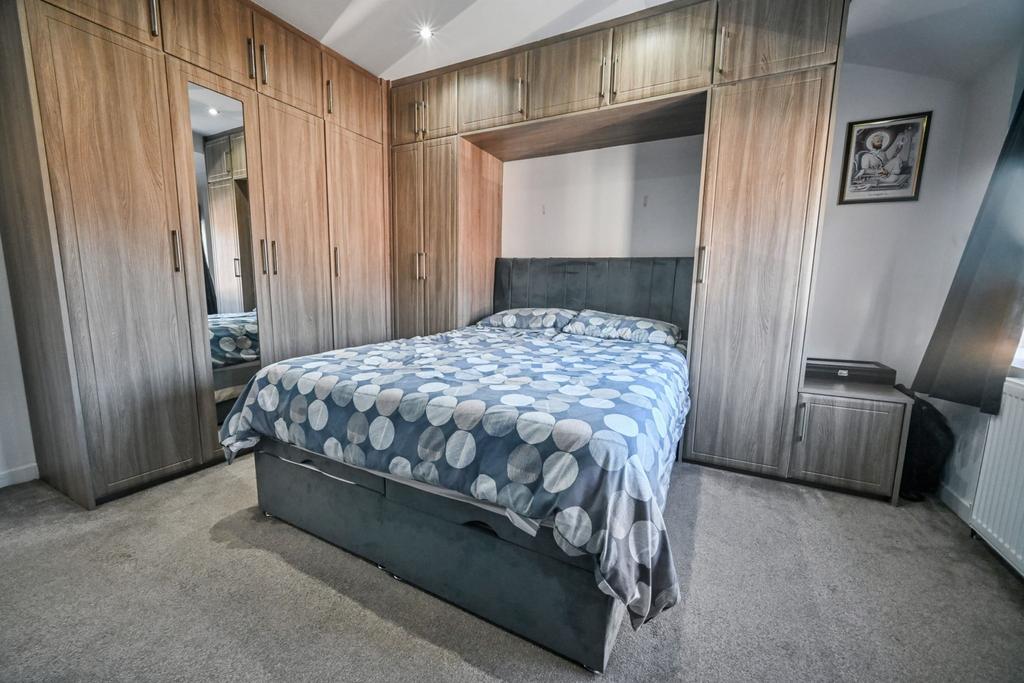 Bedroom One: 13’1’’ (4.00m) x 11’1’’ (3.38m) Fitted with a custom made bedroom suite including a number of wardrobes & overhead stores, radiator, recessed ceiling spot lights and double glazed bay window to front.