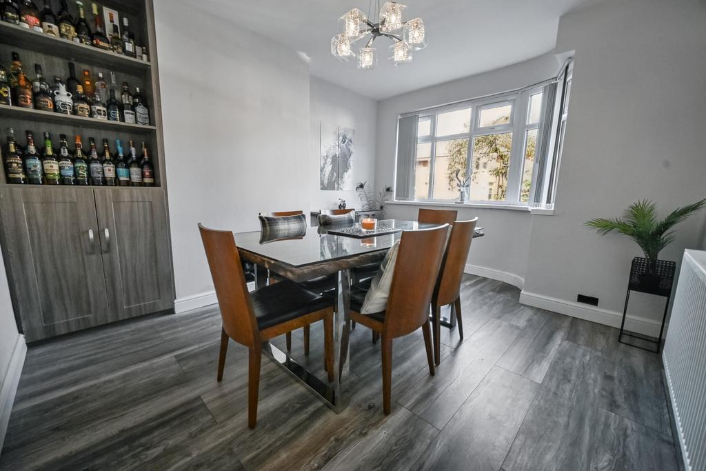 Sitting/ Dining Room: 13’1’’ (4.00m) x 11’4’’ (3.45m) Built in bespoke floor to ceiling cabinet with shelving, radiator, laminate flooring and double glazed bay window to front.