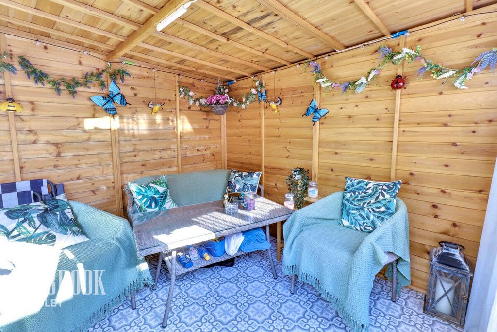Drive to the front and to the rear a private and enclosed garden which is mainly laid to lawn with lovely summer house.