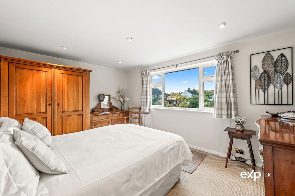 The enchanting principal bedroom is bright and airy due to the combination of uPVC windows to the front and side, along with a uPVC door opening to a wonderful decorative Juliet balcony enjoying views over the garden. The part-vaulted ceiling is another spectacular aspect that adds dimension and character to the room. The dressing area is fitted with wardrobes and drawers offering an abundance of storage. There are two radiators, and the room is decorated with wood-effect flooring. This luxurious bedroom also has the benefit of its own en-suite shower room.