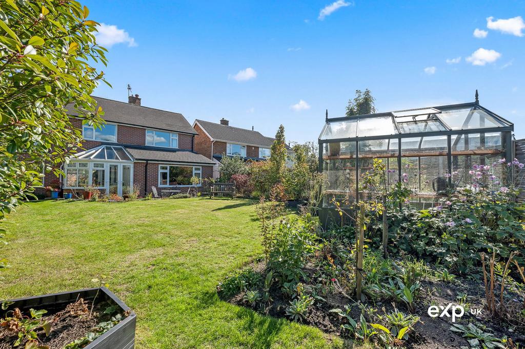 Superbly appointed, the prominent property stands behind a distinctive in-out driveway that enhances the kerb appeal and offers parking for several vehicles. There is gated access on both sides of the house, leading to a carefully maintained, west-facing garden laid out around a patio and a lawn, all edged with pretty borders filled with mature planting. The plot also includes a greenhouse and three garden sheds, providing more than enough outdoor storage solution.