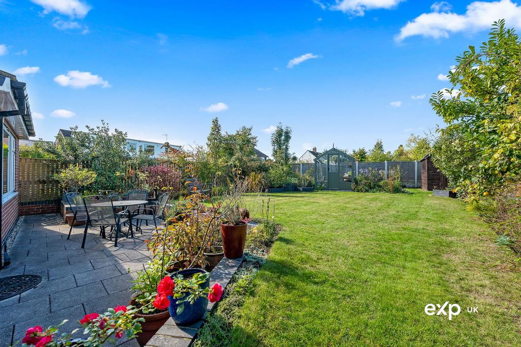 The front elevation of this attractive property is immaculately presented, providing a great first impression. A neatly block-paved, horseshoe-shaped driveway offers a good deal of parking for numerous vehicles, with an established privacy screening of mature shrubs between the in/out entrance/exit points. Secure access via both sides of the property, with lockable security gates, leads through to space housing storage sheds. The picturesque rear garden enjoys a country feel with a lovely, private position and a sunny, westerly-facing aspect. A generous paved terrace stretches across the rear of the property, offering a patio with all the room you need for garden furniture and relaxing outdoors. Shallow steps lead up to the remainder of the garden that has been lovingly landscaped. A neatly manicured lawn is edged with carefully cultivated deep borders filled with a tapestry of colourful flowers, shrubs and fruit trees. There is a greenhouse for keen gardeners and an additional shed with a power supply.