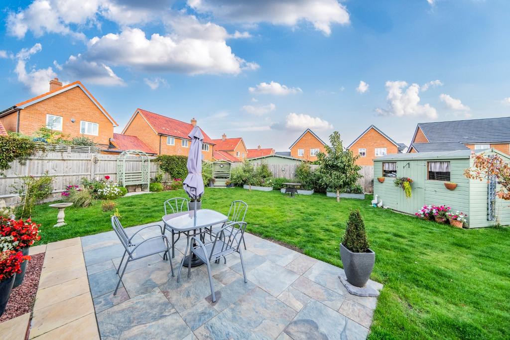 Parking courtesy of a driveway which leads to the garage and the rear garden which benefits from a sunny aspect, is mainly laid to lawn with a paved patio, variety of trees and shrubs and garden shed.