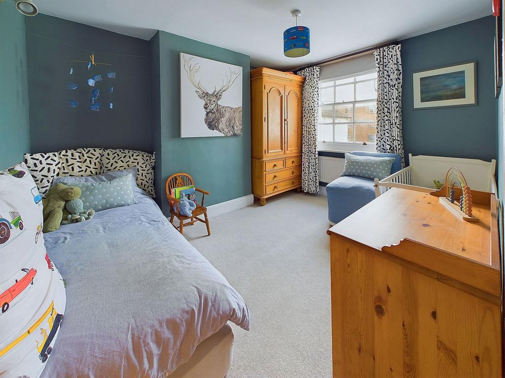 BEDROOM TWO West aspect. Comprising single glazed wooden framed sash window, carpeted flooring, radiator, one wall mounted light fitting.