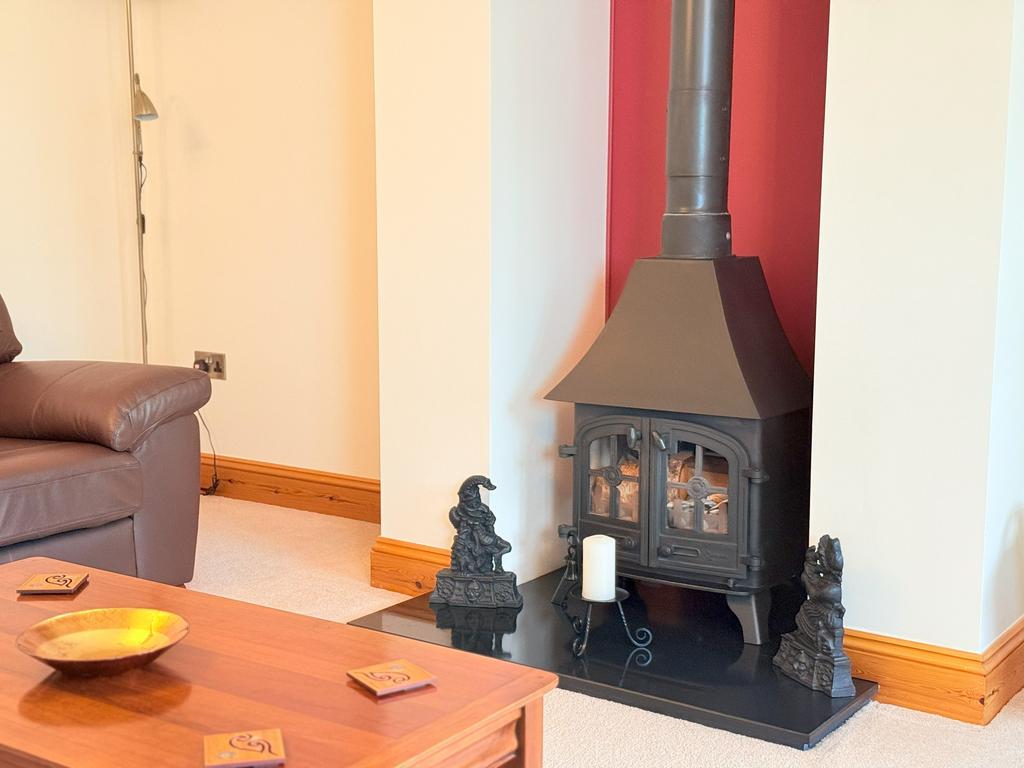 Upvc double glazed window to rear, upvc French doors to rear garden, log burner, wall mounted radiator