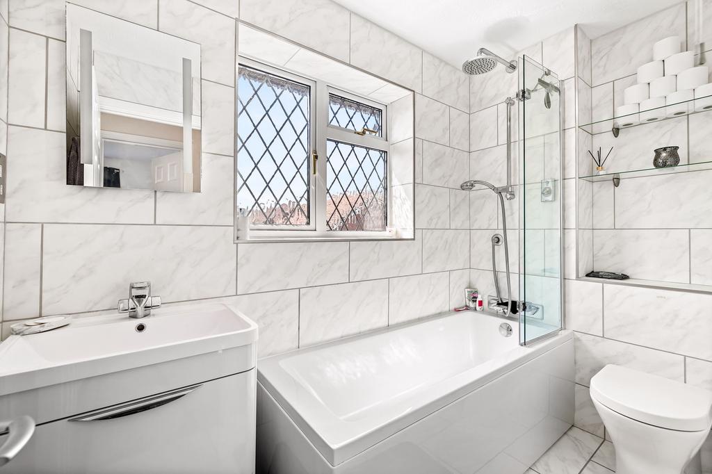 On the first floor the master bedroom overlooks the recreation ground with built in wardrobes and a refitted ensuite shower room. There are 3 further bedrooms and a refitted family bathroom.