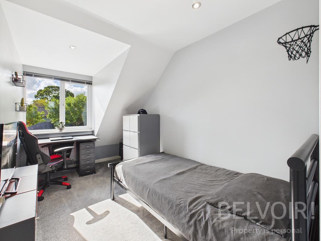 Upstairs, the generous master bedroom includes a built-in wardrobe, alongside two further bedrooms and a well-appointed family bathroom featuring both a bath and a separate shower.