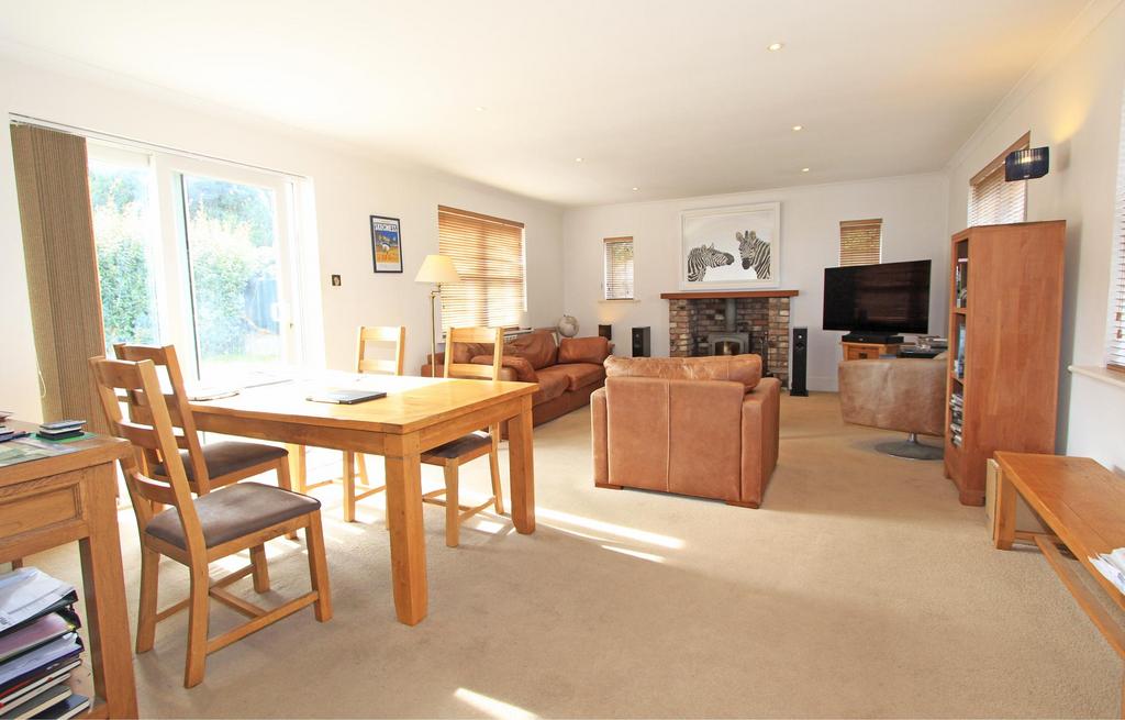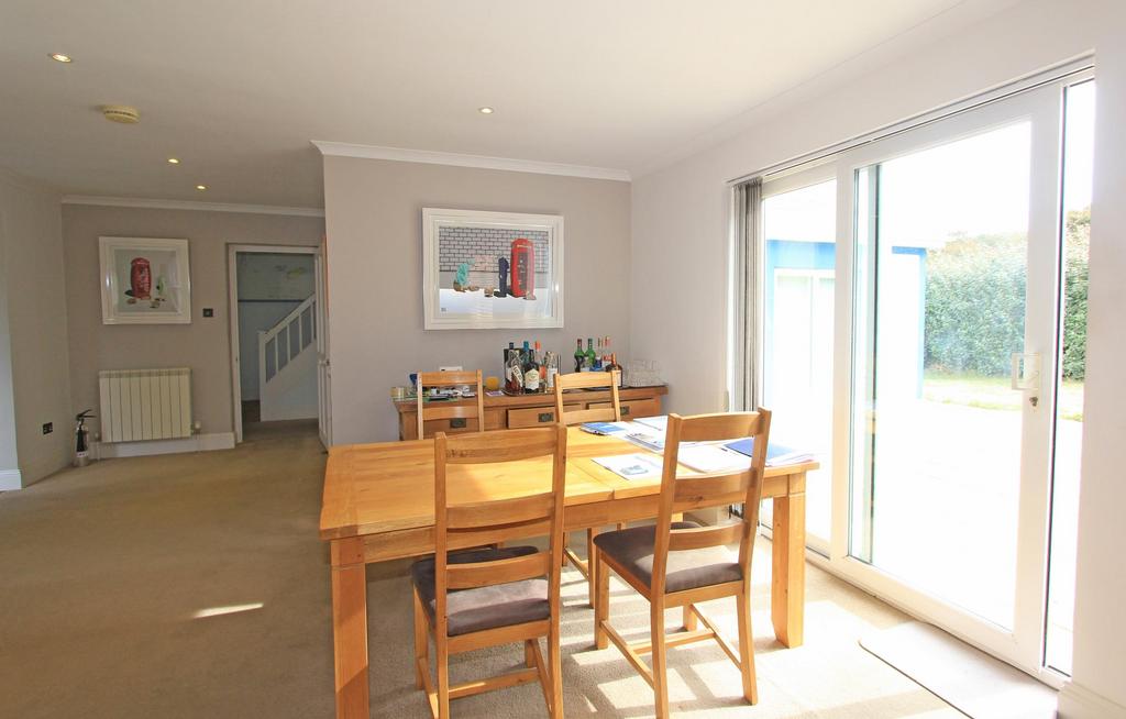The accommodation is thoughtfully arranged, beginning with an open entrance porch leading into a generously sized living room. From the inner hallway, access is provided to a fitted kitchen with rear porch off, as well as the principal bedroom suite, complete with dressing room and ensuite bathroom. A fourth bedroom or study and a cloakroom complete the ground floor.
