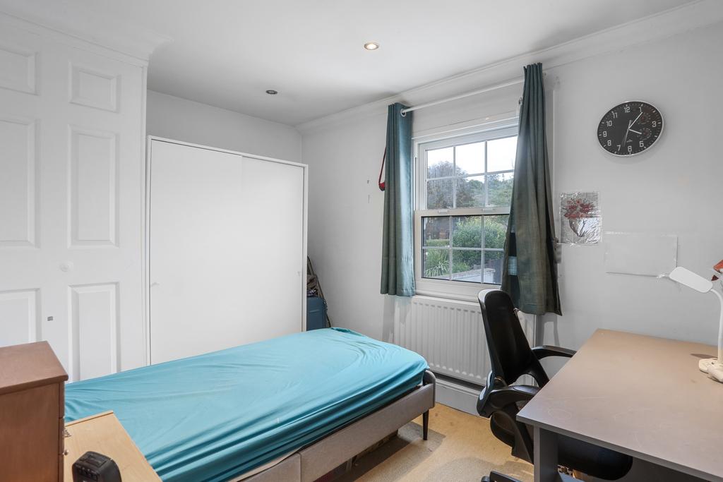 Upstairs, the property boasts two well-sized bedrooms. The principal bedroom is bright and welcoming, offering plenty of space for a double bed and additional furniture. It also enjoys a private ensuite shower room. The second bedroom, overlooking the garden, is equally spacious and versatile – perfect as a child’s room, guest room, or even a home office.