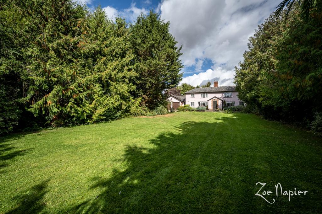 The gardens extend to just under half an acre and include an extensive front garden with a long driveway, secure close-boarded gates, and parking with ample space to create further parking. To one side, a vehicle-gated entrance provides access to the rear, as well as to the adjoining double-width, double-length quadruple garage. The landscaped rear garden features terrace areas and an outdoor swimming pool (currently unheated). Beyond, lawns and mature trees create a natural backdrop, leading seamlessly to the first paddock.