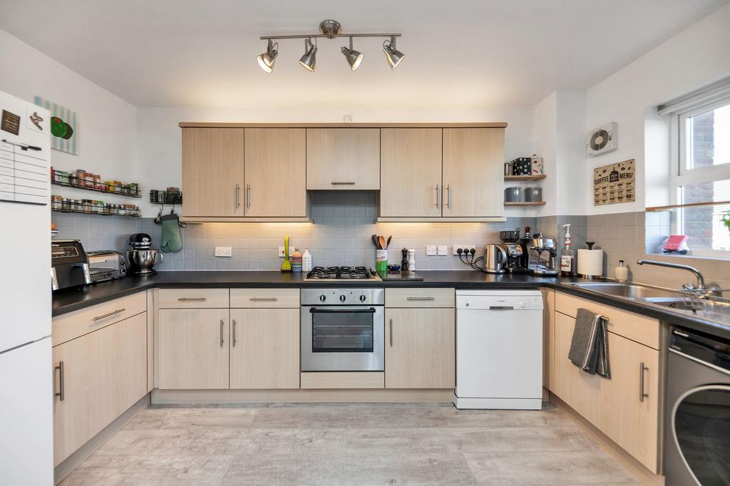 The open-plan kitchen/dining/lounge is an excellent size, enjoying multiple windows to a dual aspect, which bathe the space in light. The kitchen enjoys a range of base and wall units, laminate worktops, wood flooring, tiled splashbacks, spot lighting, an integrated oven, gas hob and extractor, and space for a dishwasher, washing machine, fridge/freezer and other kitchen appliances.