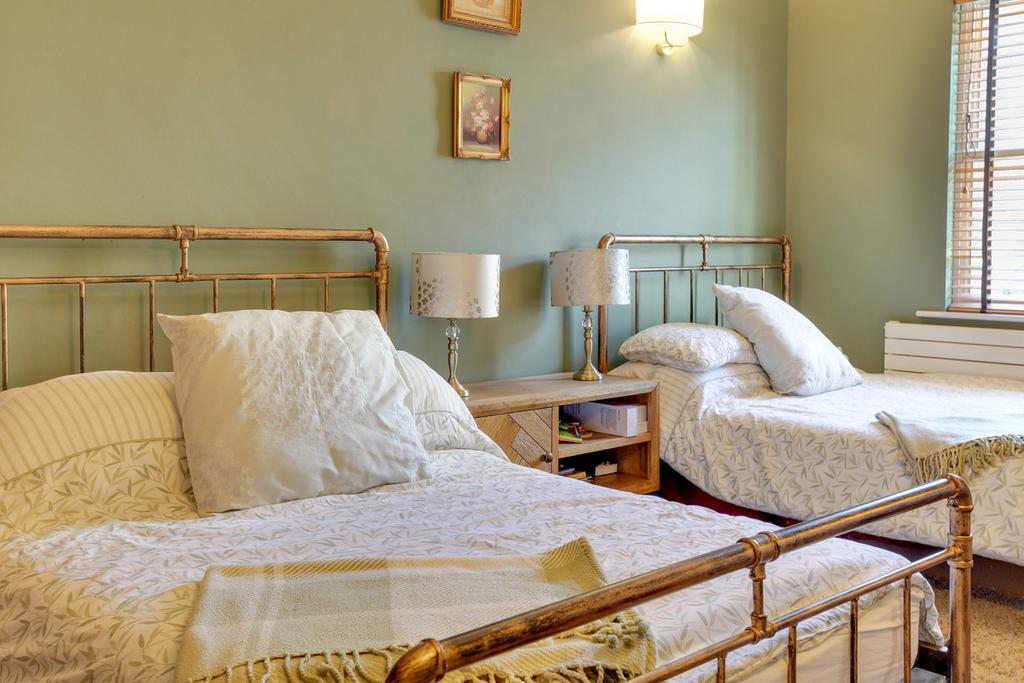 Spacious and versatile, this second bedroom features tall sash windows, soft natural decor and ample space for a huge bed, or a twin bed arrangement. Whether as a guest room, teenagers haven or could be the master bedroom, this bedroom offers comfort and flexibility.