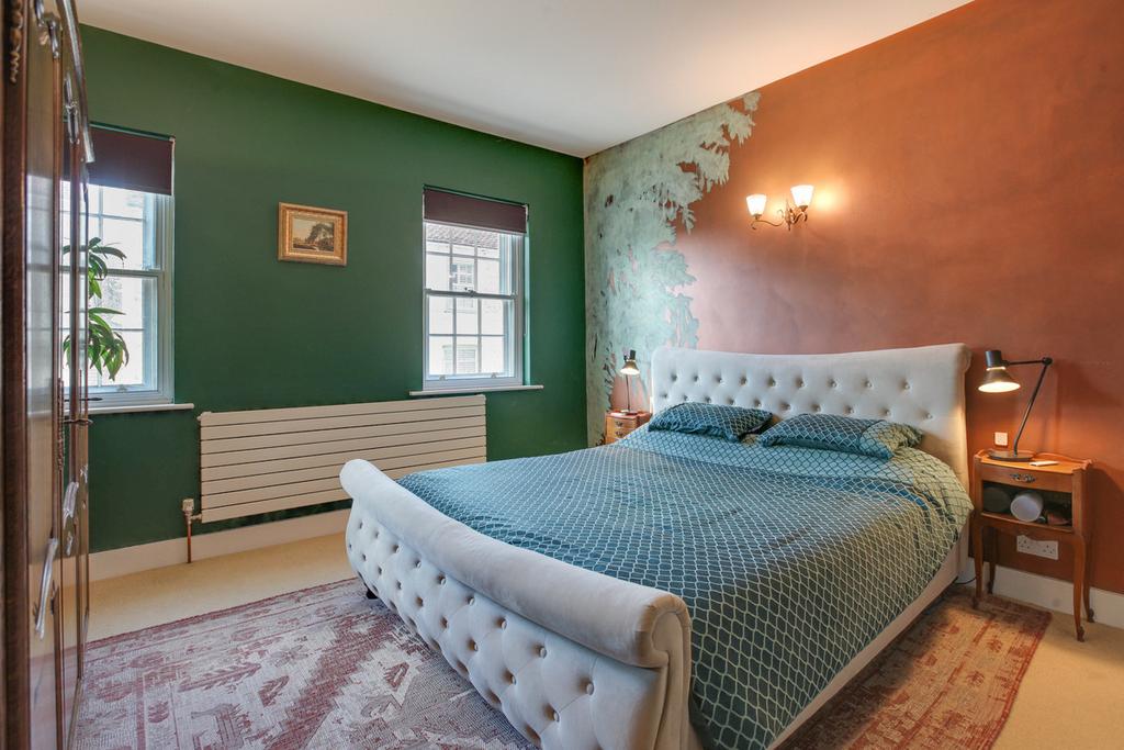 This truly exciting mezzanine room accessed by a second cast iron staircase is perched at the top of the home with a panoramic view across the huge living space offering endless possibilities - a third double bedroom, a creative studio, a stylish work from home space or simply just another incredible living space. A triangular window offering light while bespoke storage and exposed beams and wooden flooring add character and practicality.