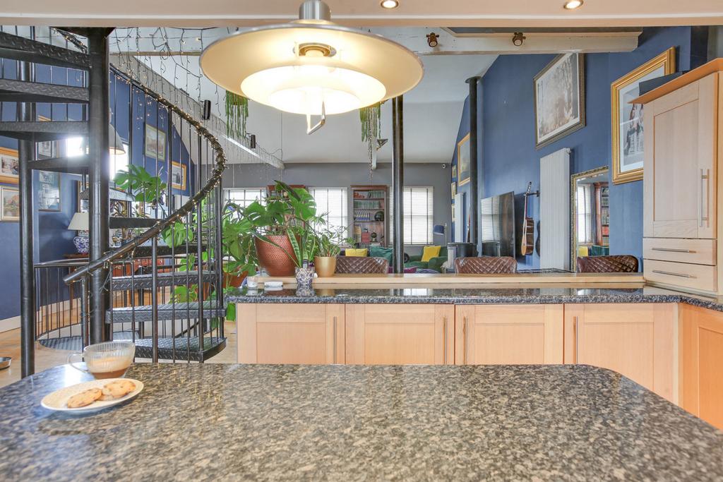 Step inside the solid timber door and be greeted by an impressive entrance hall that immediately sets the tone for this unique home. Original flagstone flooring and soft wall lighting create a warm welcome, while the cast iron spiral staircase draws your eye upward to the extraordinary living space above. Large coat and shoe storage and doors through to the Bedrooms, Family bathroom and garage