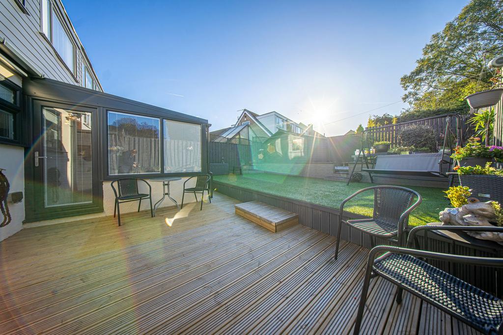 The rear garden has been carefully landscaped for low maintenance yet maximum enjoyment. It features a decked patio area, artificial lawn, and neat bedded borders, providing a private, stylish, and easy-to-manage outdoor retreat. It’s the perfect spot for summer barbecues, children’s play, or simply relaxing after a long day.