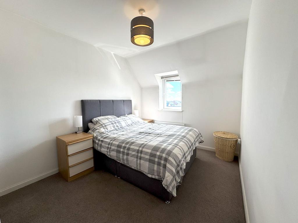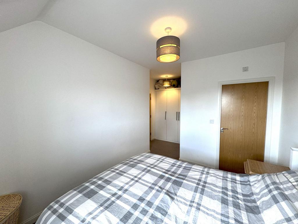The master bedroom is a well-proportioned double, enhanced by a UPVC window and fitted wardrobes that provide excellent storage while maintaining a clean, uncluttered aesthetic. The adjoining en-suite is finished with a sleek corner shower unit, white WC and sink, and floor-to-ceiling tiling for a modern, low-maintenance look.