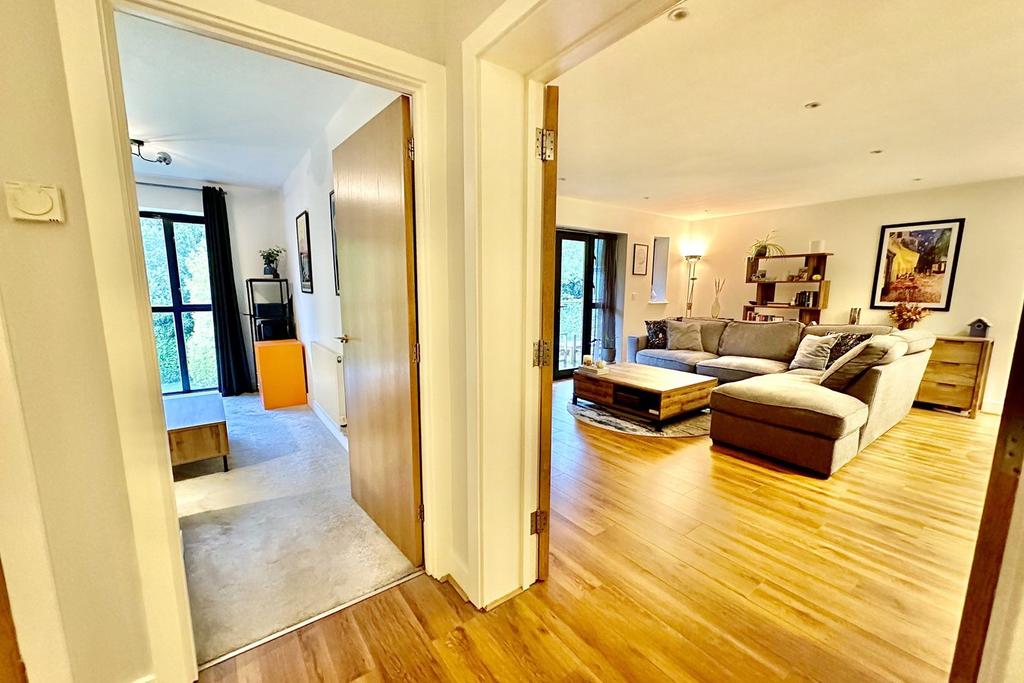 This distinctive development is accessed via a well maintained communal hallway with lift leading to the entrance of the apartment. On entering the property a spacious hallway provides access to all accommodation. An impressive open plan kitchen/living/dining room benefits from double doors opening onto a private balcony with a pleasant woodland outlook. The kitchen benefits from a comprehensive range of floor and eye level units finished with a matching work surface, island work unit with breakfast bar seating area and a comprehensive range of integrated appliances.