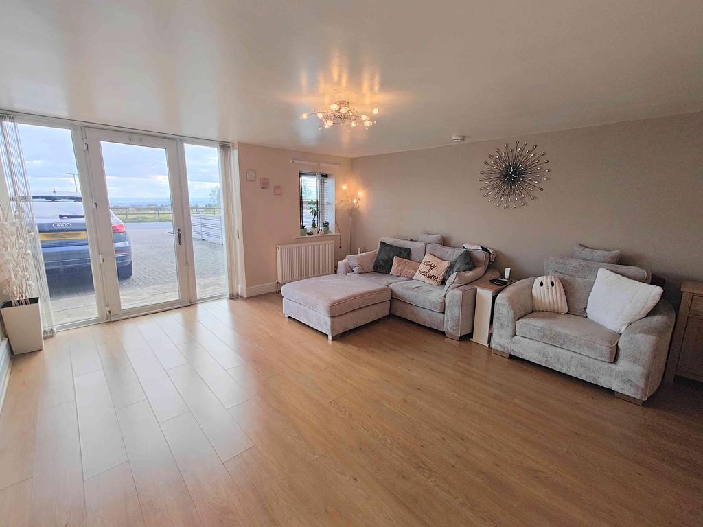 A rather large and open living room that the first thing you notice is the large floor to ceiling uPVC double glazed windows and door (in addition to the normal sized uPVC double glazed window) that not only bathe the whole room in ample natural light but also offers fantastic views to the front elevation and access to the front driveway. The room offers more than ample space for a three piece suite, along with additional furniture. With a wood laminate floor, central light fitting, two double radiators and a television access point.