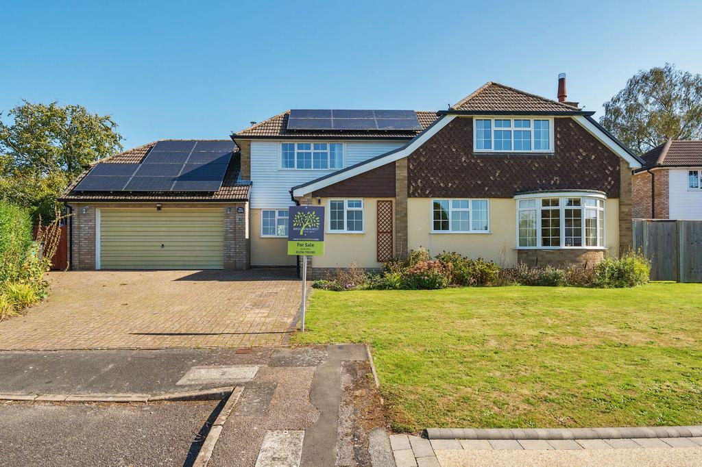 NO ONWARD CHAIN -Set on the desirable Mary Lane in the exclusive village of North Waltham, this two-storey family home offers practical, well-planned accommodation with an attached double garage and front driveway. The welcoming entrance hall opens to a generous sitting room, centred around a feature brick fireplace. Glazed double doors connect to a separate dining room, allowing either an open-plan flow for entertaining or clearly defined spaces as required. To the rear, a spacious kitchen/breakfast room features Shaker-style cabinetry, polished granite worktops and ample room for a family table beside a contemporary stove with bi-fold doors giving access to the garden. A utility room discreetly positioned off the kitchen keeps everyday chores out of sight. A study/home office is accessed from the hall, and a well-appointed shower room completes the ground floor.