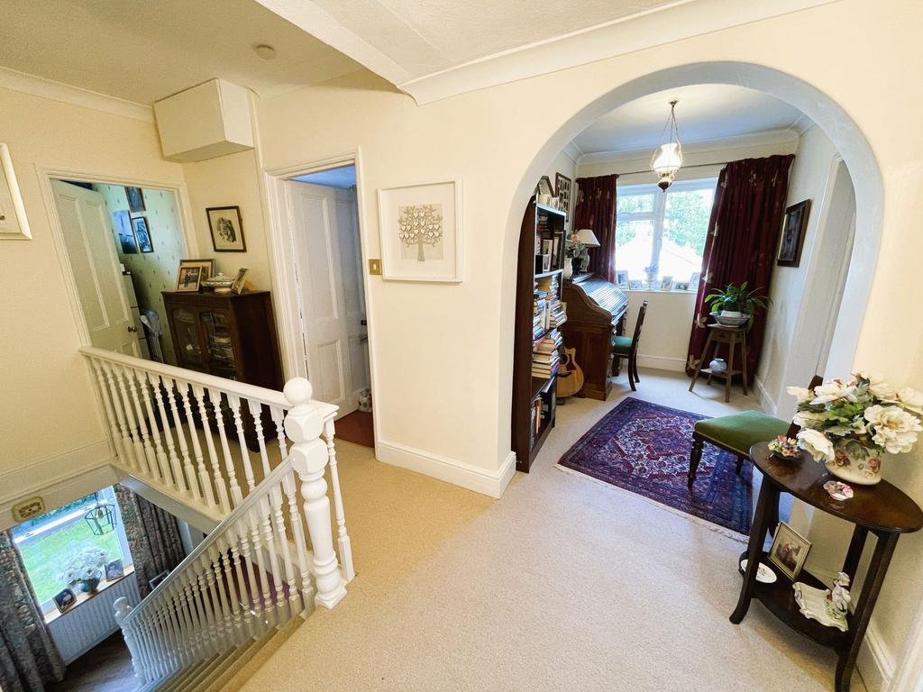 Stairs lead onto the first floor landing. Doors to all Bedrooms, Office, Bathroom and Shower Room. Two radiators. Double glazed window to side. Door to airing cupboard with water tank and shelving for storage.