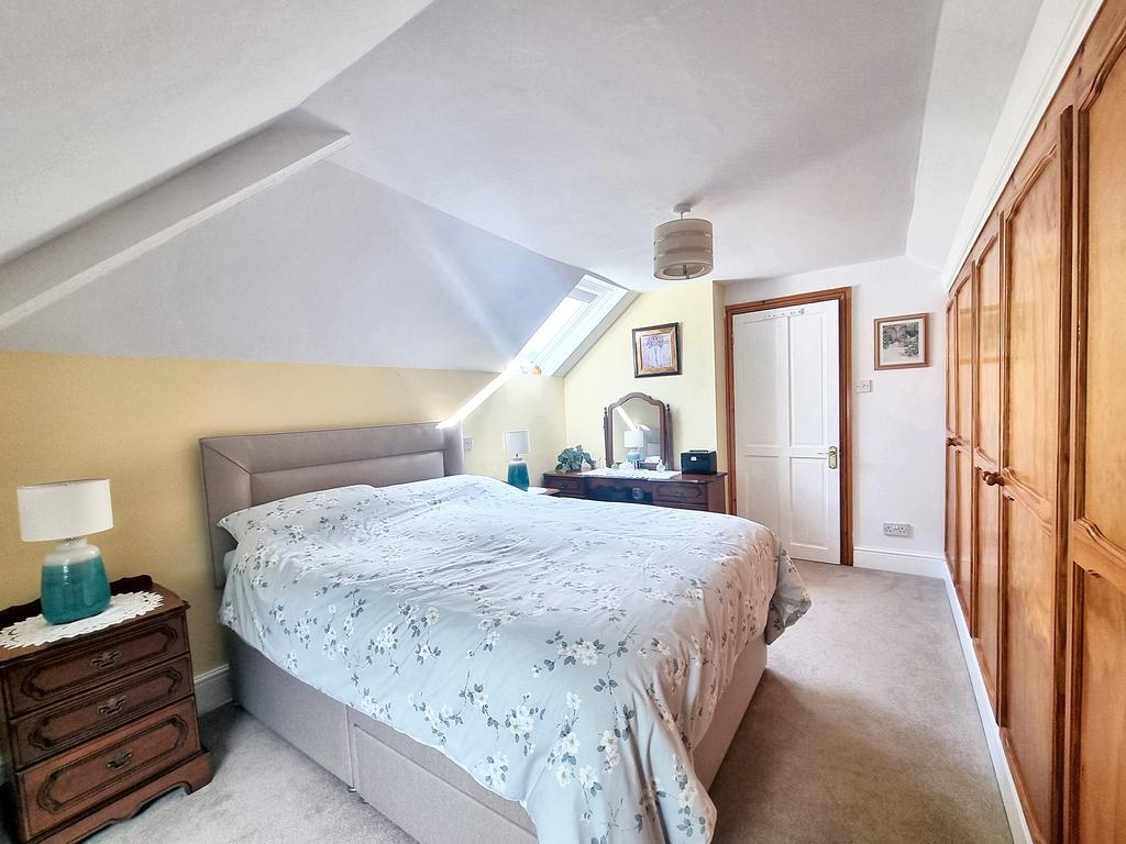 BEDROOM 1 (5.90m x 2.60m approx)(19'35" x 9'1" approx) with fitted carpet, two skylight windows, range of six built-in wardrobes, radiator and access to the eaves storage areas.