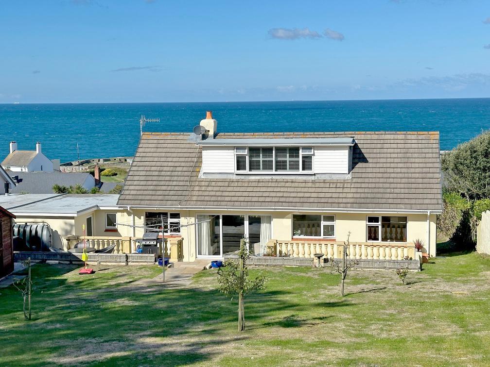 An attractive split-level family home, set back from a private road and enjoying picturesque sea views over Platte Saline Bay, with the Island of Burhou visible to the north-west. This property benefits from a good size south-facing lawned rear garden and an additional lawn to the front.