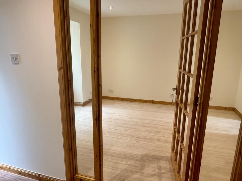 Laminate flooring. Loft access hatch. Electric heater. Glass panel door with side screens opening to: