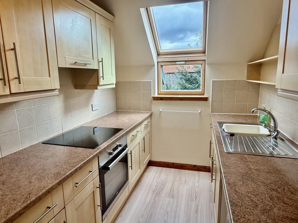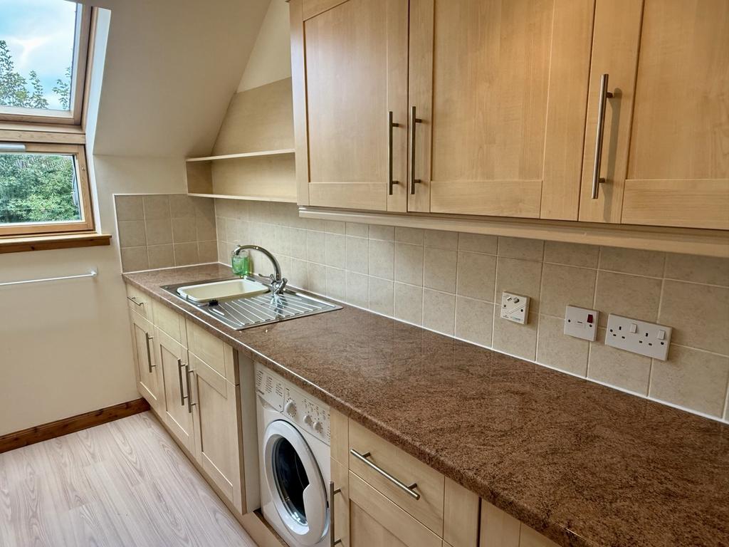 Fitted wall and base units with built in electric oven and hob. Fridge freezer and washing machine. Tiled above the work tops. Window to the rear of the property. Stainless steel sink unit with mixer tap.