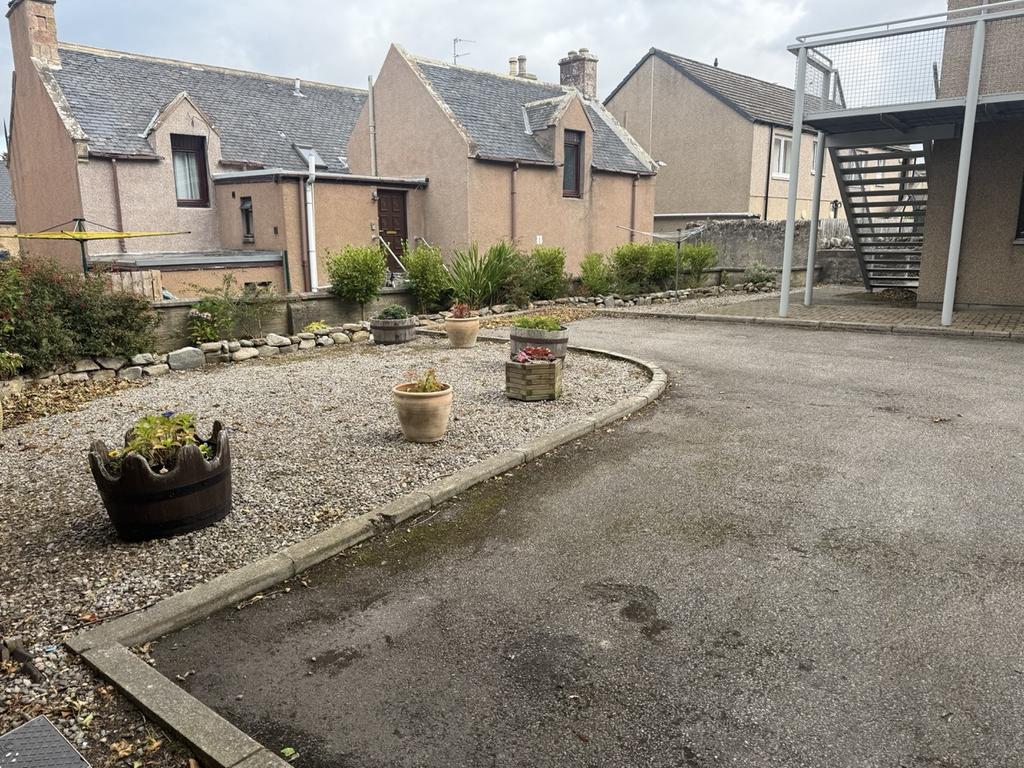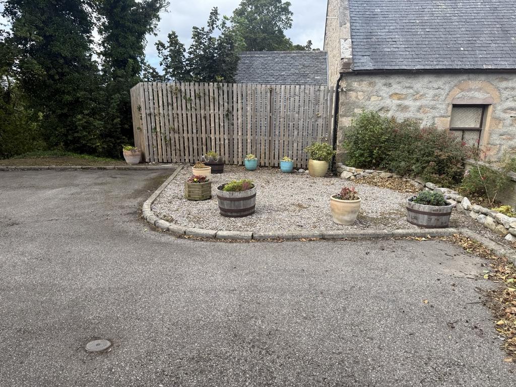 Private parking spaces for the residents. Outside communal gardens and space for refuse bins.