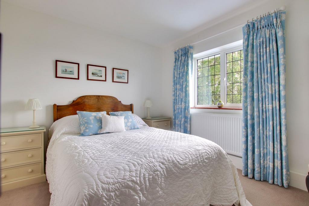 From the staircase, the landing leads to three well-proportioned double bedrooms. The principal bedroom is a true delight, enjoying a dual aspect with far-reaching views across the open Forest and towards the Isle of Wight. It also features a useful range of fitted wardrobes and a stylish en suite shower room. The two additional double bedrooms are both enhanced by built-in storage and share the family bathroom. Each room benefits from magnificent outlooks over the Forest or gardens, ensuring a light and tranquil feel throughout. The loft is fitted with a ladder and has been boarded, providing excellent additional storage space.