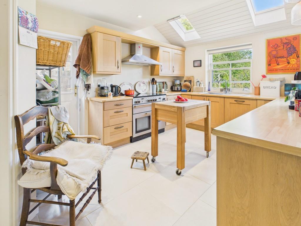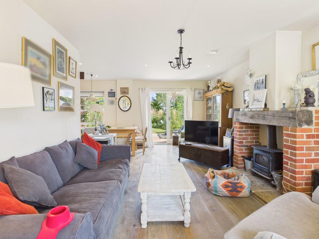 This is a stunning family home that perfectly blends country living with modern amenities. Upon entering, you are welcomed into a spacious hallway with the stairway ahead. There's a convenient under stair cupboard and a downstairs cloakroom equipped with a modern toilet and hand basin. To the left of the stairway, you'll find a versatile second reception room, ideal for a study. To the immediate right is the dual-aspect living area, featuring a beautiful wood-burning stove set on a stone hearth with a wood and brick mantle, creating a wonderful focal point. The living area of the property flows seamlessly into the dining area at the rear, featuring large French doors that provide lovely views of the garden and the surrounding rural fields. The kitchen, designed in a country style, includes oak wall and base units that offer ample worktop space, along with a convenient breakfast bar. It is equipped with a stainless steel sink and drainer, positioned under a window overlooking the rear garden, and a Rangemaster electric range cooker with an induction hob and overhead extractor. Additionally, the kitchen benefits from two skylights and a back door. For added convenience, there is also a separate utility room. Throughout the entire ground floor, you'll find recessed spotlights, elegant sash windows, and comfortable underfloor heating. Leading up the stairs, you are greeted by a light and open landing space. Straight ahead is the family bathroom, featuring a contemporary white suite that includes a toilet, hand basin, modern shower cubicle with overhead and hand showers, and a bath. To the left of the stairway, you will find the large and bright master bedroom, complete with a built-in double wardrobe and an en-suite shower room. Additionally, there are three further double bedrooms, all well-lit with beautiful sash windows, two of which also have built-in wardrobes. This is a stunning property, perfectly situated and ideal for families.
