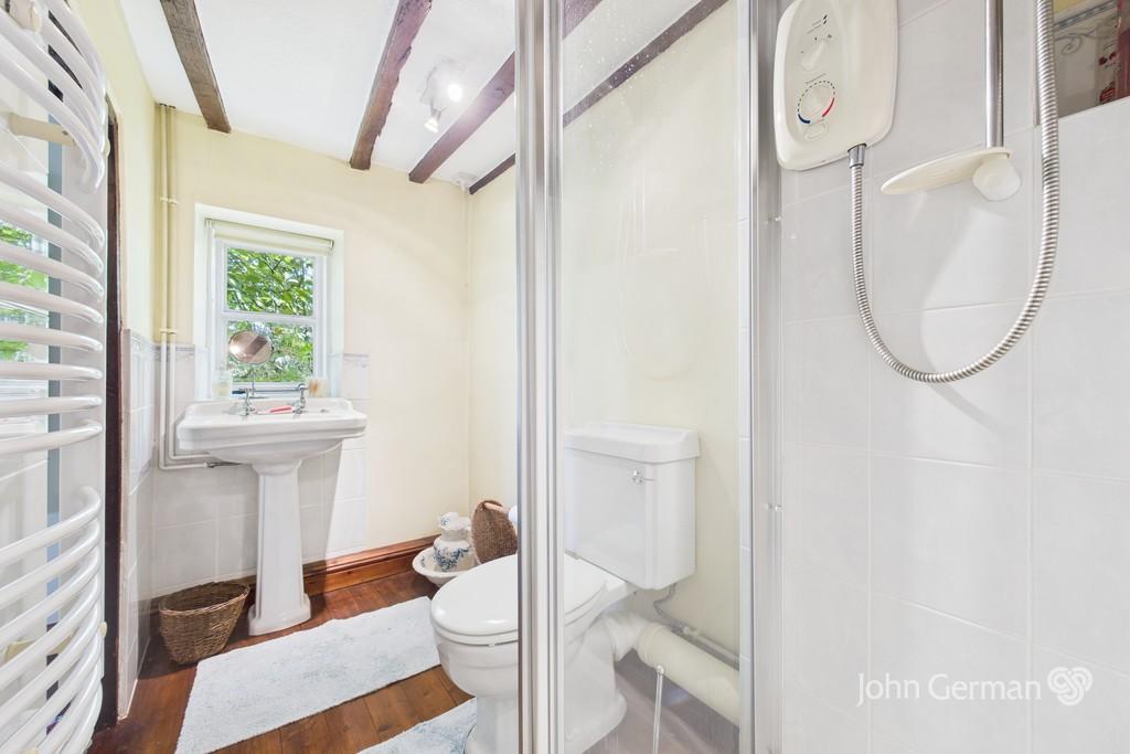 To the first floor, the lovely landing has exposed beams and timbers, and rear facing windows, a built-in airing cupboard, and original doors to the four good size bedrooms, all able to accommodate a double bed, and all with their own original timber features. The room at the end of the landing has the benefit of a fitted en suite shower room, having a modern suite with tiled splashbacks incorporating a double shower cubicle with an electric shower over, and a side facing window providing natural light. Completing the first-floor accommodation is the fitted family bathroom which has a three-piece suite incorporating a panelled spa bath with an electric shower and folding screen above, plus exposed beams and timbers.