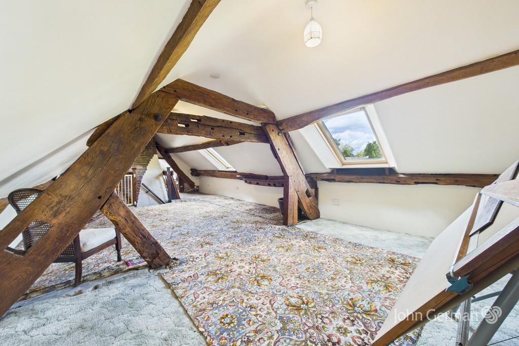 An original door on the landing opens to stairs rising to the delightful, interconnected attic rooms, having a multitude of exposed beams and woodwork, and double-glazed skylights providing an ample amount of natural light, this space making an ideal games or work area for the family, or occasional sleeping.