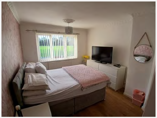 Externally, the property benefits from a large front garden and driveway for off-road parking, with gated side access leading to a generous rear garden. Backing directly onto St Marie's Catholic Primary School playing fields, the rear garden offers both privacy and open views.