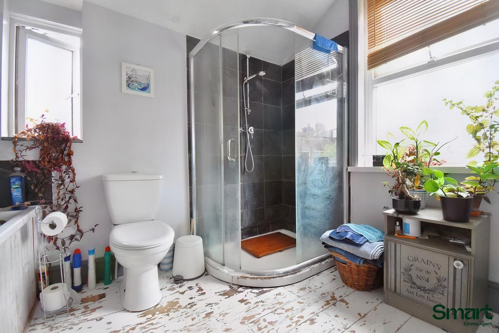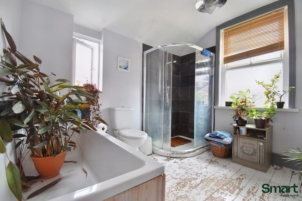 On the first floor, you’ll find two generous double bedrooms, each filled with character. The principal bedroom is particularly spacious, featuring a large window that allows plenty of natural light to pour in, along with a beautiful original fireplace that adds a touch of elegance. The second bedroom also benefits from a large window and its own charming feature fireplace, creating a cosy and welcoming feel.