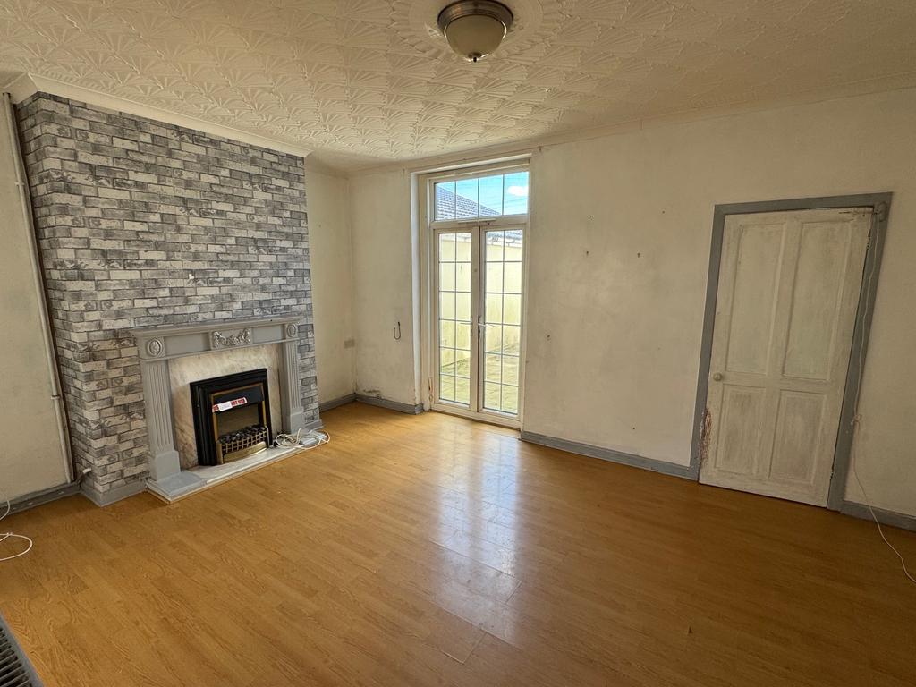LOUNGE: 17'02'' x 11'11''-approx. Fireplace with electric coal effect fire [ not tested ] fireplace surround. Original fireplace so scope to install log burner if required. upvc d/g opening French doors to rear, 2 x radiators, laminate wood flooring, archway into: