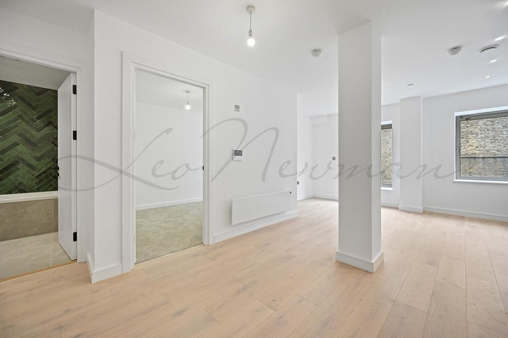 A spacious open-plan reception with a sleek fitted kitchen forms the centrepiece of the home, with large windows allowing excellent natural light. The kitchen comes with integrated appliances and ample storage, creating a clean modern look. The double bedroom is neutrally decorated and well sized, while the stylish bathroom features striking herringbone tiling, a modern vanity and gold fittings for a boutique feel.