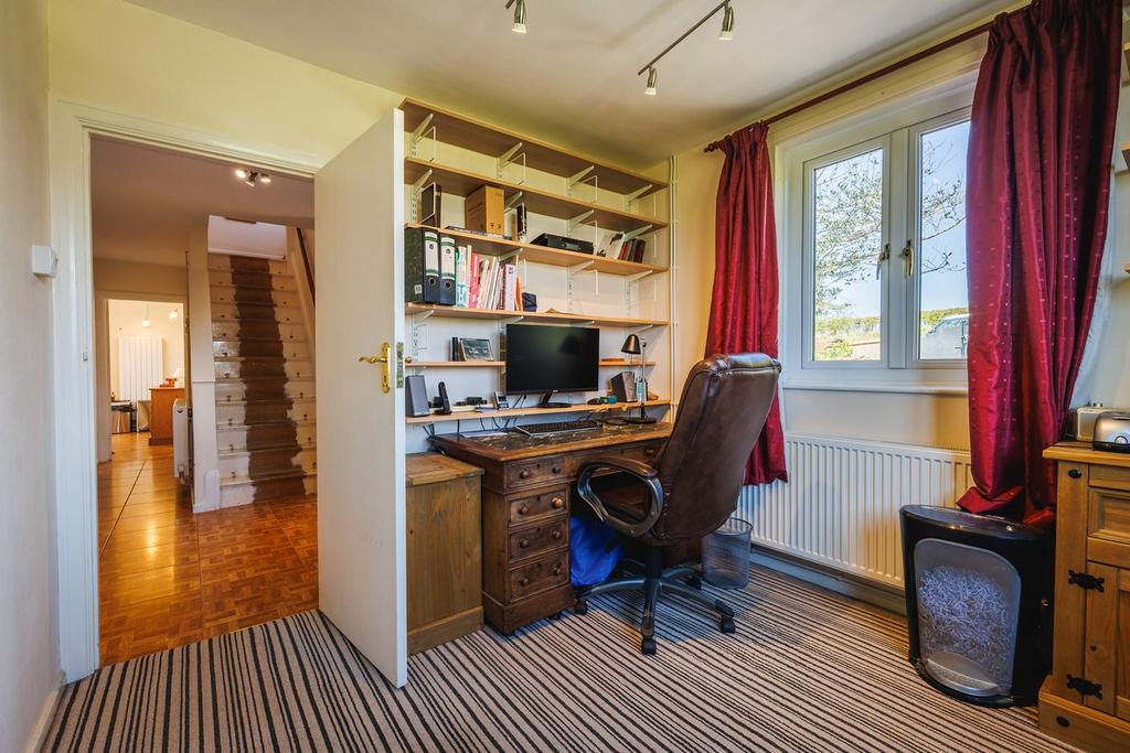 Upstairs, the first floor offers two additional double bedrooms, one of which enjoys elevated sea views. A family bathroom is located at the end of the landing, and there is plentiful storage space within the eaves.