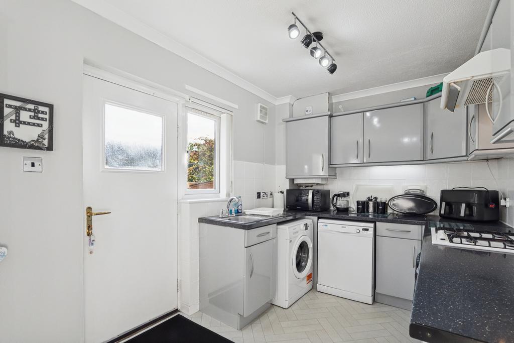 The lower level consists of a welcoming entrance vestibule, a bright formal lounge with under-stair storage, a modern fitted dining kitchen with a range of wall and floor-mounted units and appliances and rear door access to the south-facing garden.