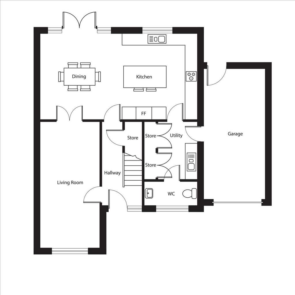 - Open plan kitchen and dining room
