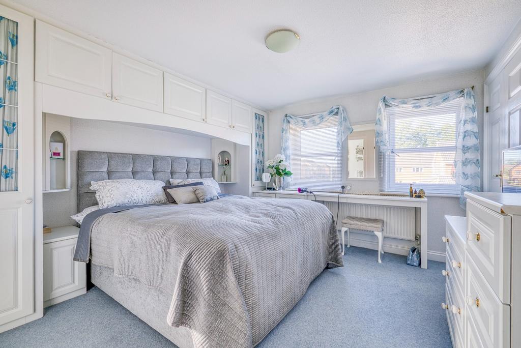 There are three further bedrooms, two of which also have fitted wardrobes. The family bathroom is well appointed with tiled walls, fitted cupboards, a bath with shower and screen, hand basin and loo.