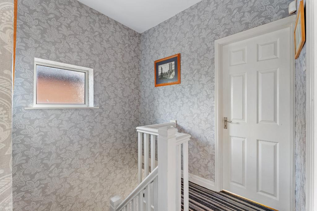 Side frosted double glazed unit. Carpet flooring. Loft hatch. Pendant light.