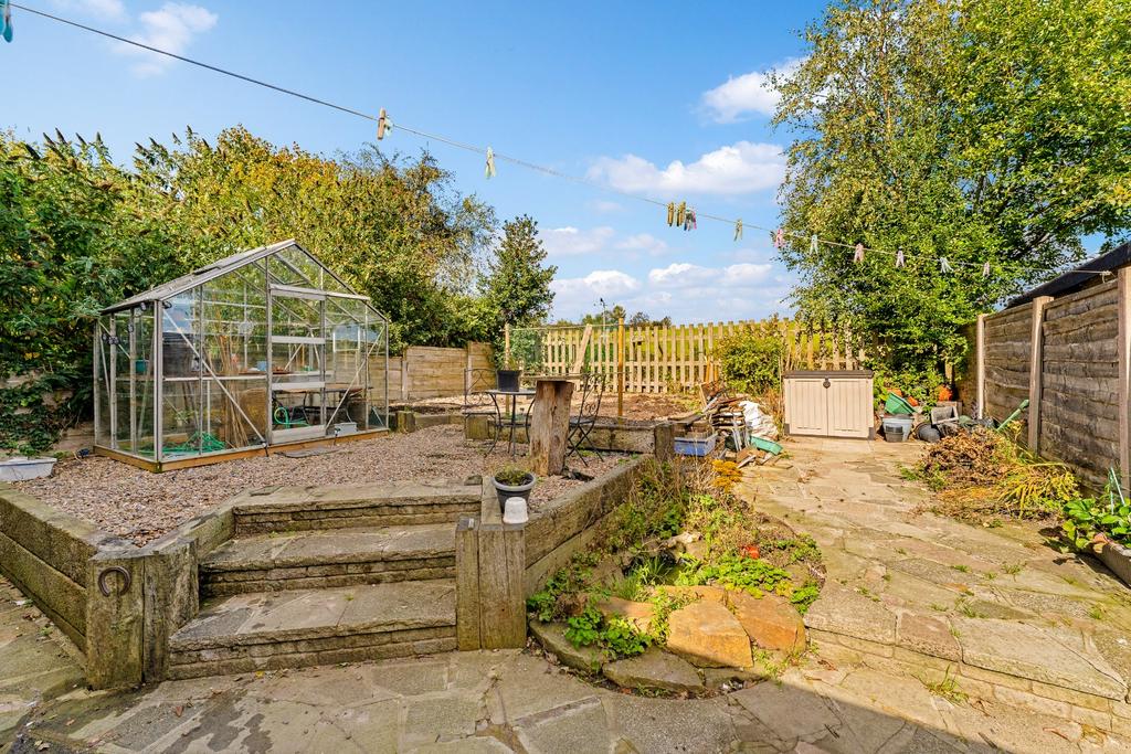 Farm field views to rear. Flagged split-level patio. Greenhouse. Outside electric point. LED rear security light. Fence panel surround. Hose pipe connection.
