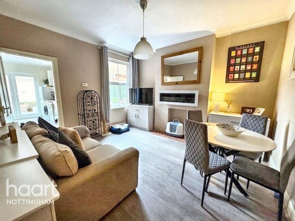 The living room is filled with light from a large bay window and benefits from a fully functioning log burner, creating a wonderful, cosy atmosphere. Following the hallway you are led to an additional dining area, and to the rear there is a spacious kitchen, complete with abundant storage, opening to a low-maintenance, south-facing patio garden. Upstairs, you’ll find three comfortable bedrooms on the first floor, along with a clean and well-maintained family bathroom, and a fourth bedroom on the second floor.