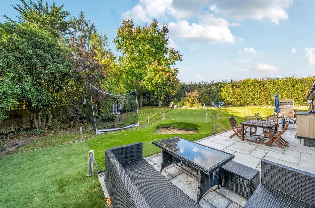 Externally, the property boasts beautifully landscaped gardens with new plants, flowers, and topsoil, creating a vibrant and inviting outdoor space. An outdoor bar and kitchen area serve as perfect outdoor entertaining facilities. A professionally designed golf pitch & putt with a bunker adds a fun feature. To the front there is a gated driveway with parking for multiple cars and an oak-framed double garage provides secure parking and potential loft storage.
