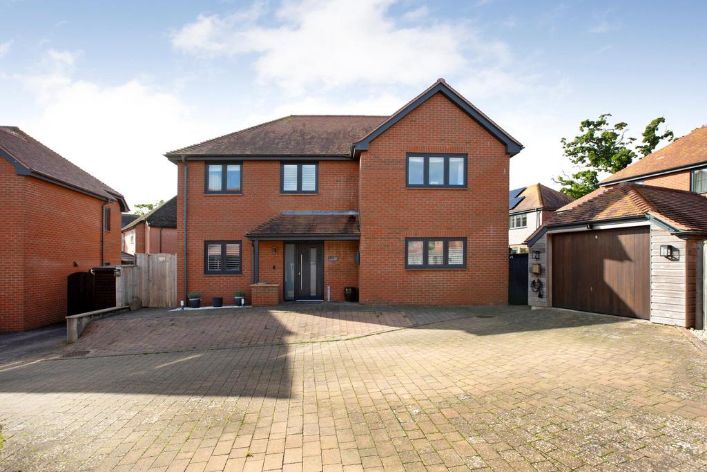 To the rear is a good sized garden with a Southerly aspect, at the bottom a timber summer house/home office and next to this an attractive outside dining area with composite decking and pergola. The remaining garden has been laid to artificial grass for ease of maintenance and there is a good sized patio accessed from the sitting room and conservatory. Located in the corner of the development, to the front the house benefits from driveway parking for a number of cars and there is a garage.