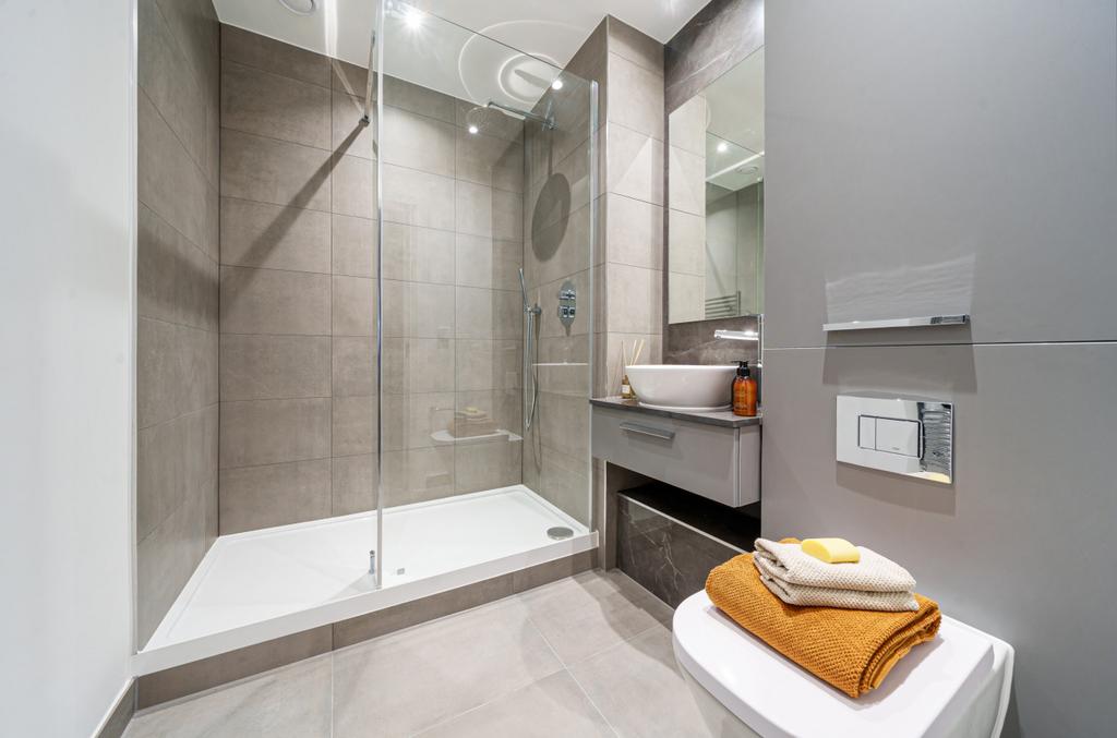 - Tiled bathroom floor and walls